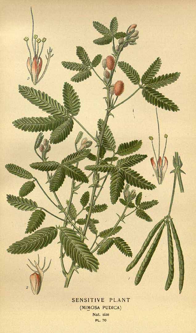 Illustration Mimosa pudica, Par Step, E., Bois, D., Favourite flowers of garden and greenhouse (1896-1897) Favourite Fl. vol. 1 (1896), via plantillustrations