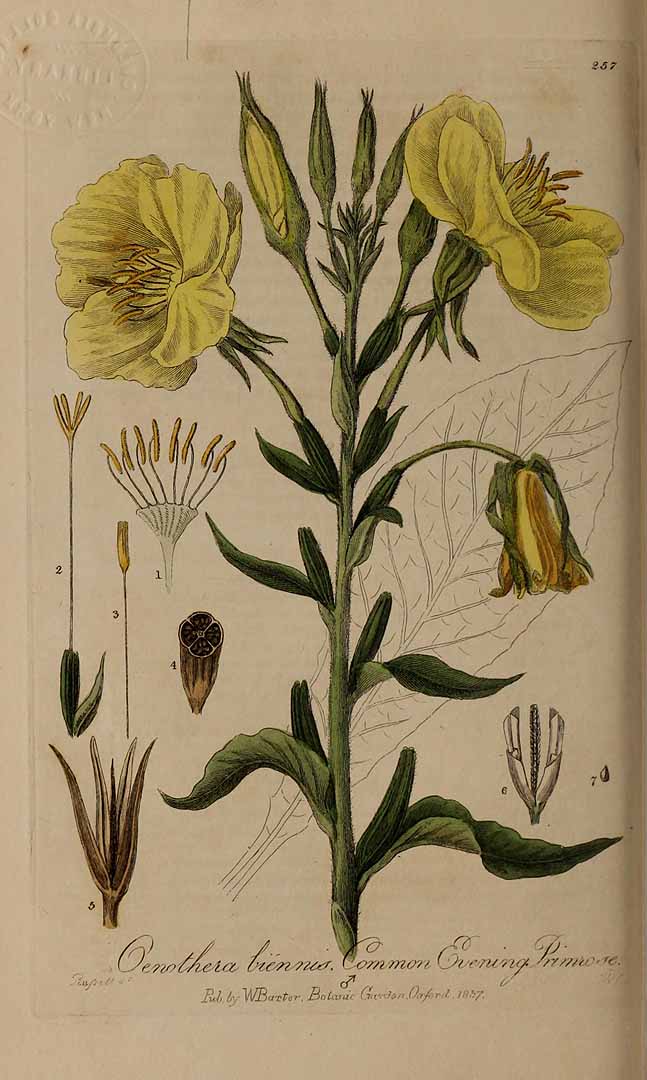 Illustration Oenothera biennis, Par Baxter, W., British phaenogamous botany (1834-1843) Brit. Phaen. Bot. vol. 4 , via plantillustrations