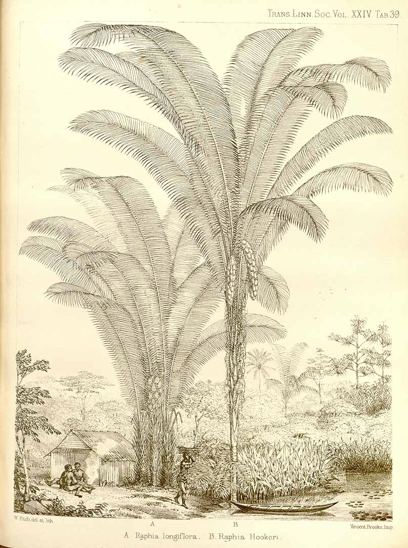 Abbiw, D.K., 1990, Useful Plants of Ghana. West African uses of wild and cultivated plants. Intermediate Technology Publications and the Royal Botanic Gardens, Kew. p 41 ; Ambasta S.P. (Ed.), 2000, The Useful Plants of India. CSIR India. p 515 ; Balick, M.J. and Beck, H.T., (Ed.), 1990, Useful palms of the World. A Synoptic Bibliography. Colombia p 238, 298, 383, ; Blomberry, A. & Rodd, T., 1982, Palms. An informative practical guide. Angus & Robertson. p 155 ; Burkill, H. M., 1985, The useful plants of west tropical Africa, Vol. 4. Kew. ; Dalziel, J. M., 1937, The Useful plants of west tropical Africa. Crown Agents for the Colonies London. ; Danforth, R.M., & Boren, P.D., 1997, Congo Native fruits. Twenty-five of the best. Privately published. p 69 (As Raphia gigantea) ; Facciola, S., 1998, Cornucopia 2: a Source Book of Edible Plants. Kampong Publications, p 30 ; FAO Corporate Document Repository. The Major Significance of 'Minor' Forest Products. Appendix 3 ; Grubben, G. J. H. and Denton, O. A. (eds), 2004, Plant Resources of Tropical Africa 2. Vegetables. PROTA, Wageningen, Netherlands. p 564 ; Hawthorne, W.& Marshall, C., 2013, Nimba Western Area Iron Ore Concentrator Mining Project Environmental and Social Impact Assessment. AcelorMittel Liberia. p 505 ; Haynes, J., & McLaughlin, J., 2000, Edible palms and Their Uses. University of Florida Fact sheet MCDE-00-50-1 p 12 ; Hedrick, U.P., 1919, (Ed.), Sturtevant's edible plants of the world. p 554 ; Jardin, C., 1970, List of Foods Used In Africa, FAO Nutrition Information Document Series No 2.p 36 ; Jones, D.L., 1994, Palms throughout the World. Smithtonian Institution, Washington. p 326 ; Manvell, A., 2011, Use of Non-Timber Forest Products around Sapo National Park, Liberia (Report B) p 52 ; Nkeoua, G. & Boundzanga, G. C., 1999, Donnees sur les produits forestieres non ligneux en Republique du Congo. FAO. p 35 ; Ogbuagu, M. N., 2008, Vitamins, phytochemicals and toxic elements in the pulp and seed of raphia palm fruit (Raphia hookeri). Fruits, Vol. 63, p. 297-302 ; Peters, C. R., O'Brien, E. M., and Drummond, R.B., 1992, Edible Wild plants of Sub-saharan Africa. Kew. p 39 ; Purseglove, J.W., 1972, Tropical Crops. Monocotyledons. Longmans p 431 ; Riffle, R.L. & Craft, P., 2003, An Encyclopedia of Cultivated Palms. Timber Press. p 430 ; Sukarya, D. G., (Ed.) 2013, 3,500 Plant Species of the Botanic Gardens of Indonesia. LIPI p 812 ; Trans. Linn. Soc. London 24:438. 1864