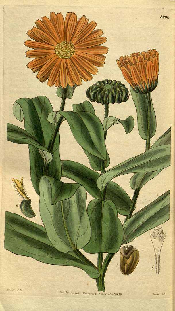 Noms anglais et locaux : Pot marigold, English marigold, Garden Marigold, Calendula, Golden cup flower, Jinzhanhua, Marigold, Ringelblume, Vrtni ognjiÄ