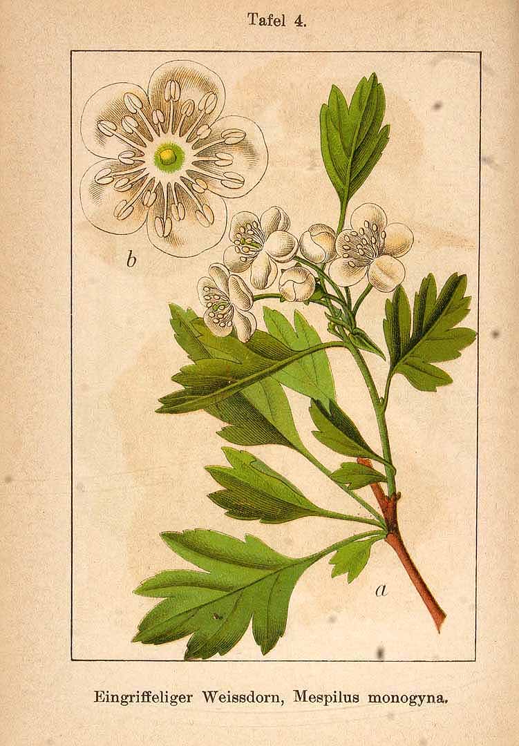 L'aubépine est une plante médicinale extrêmement précieuse. Elle est principalement utilisée pour traiter les troubles du cur et du système circulatoire, en particulier l'angine de poitrine[254]. Les herboristes occidentaux la considèrent comme un « aliment pour le cur », elle augmente le flux sanguin vers les muscles cardiaques et rétablit un rythme cardiaque normal[254]. Cet effet est provoqué par la présence de bioflavonoïdes dans le fruit, ces bioflavonoïdes sont également fortement antioxydants, aidant à prévenir ou à réduire la dégénérescence des vaisseaux sanguins[254]. Le fruit est antispasmodique, cardiaque, diurétique, sédatif, tonique et vasodilatateur[4, 9, 21, 46, 165]. Les fruits et les fleurs d'aubépine sont bien connus dans la médecine populaire à base de plantes comme tonique cardiaque et les recherches modernes ont confirmé cette utilisation. Les fruits et les fleurs ont un effet hypotenseur et agissent également comme un tonique cardiaque direct et doux[222]. Elles sont particulièrement indiquées dans le traitement de la faiblesse cardiaque associée à l'hypertension artérielle[222], elles sont également utilisées pour traiter un muscle cardiaque affaibli par l'âge, pour l'inflammation du muscle cardiaque, l'artériosclérose et pour les problèmes cardiaques nerveux[21]. Une utilisation prolongée est nécessaire pour que le traitement soit efficace[222]. On l'utilise normalement sous forme de thé ou de teinture[222]. L'aubépine est associée au ginkgo (Ginkgo biloba) pour améliorer la mauvaise mémoire, en améliorant l'apport sanguin au cerveau[254]. L'écorce est astringente et a été utilisée dans le traitement du paludisme et d'autres fièvres[7]. On dit que les racines stimulent les artères du cur[218]{{{5(+)
