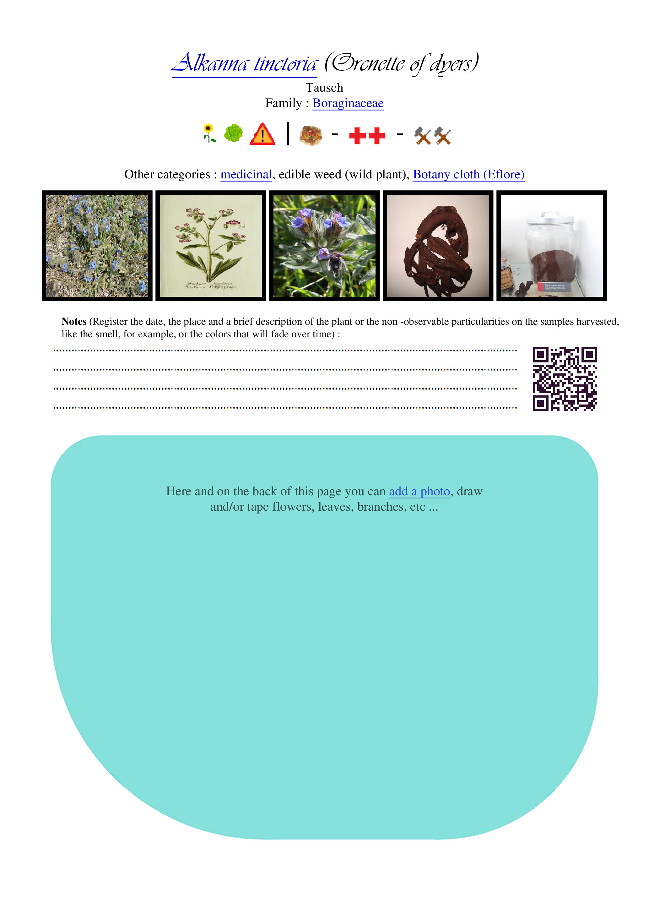 Voici la Fiche pédagogique et ludique pour l'Alkanna tinctoria (Orcanette des teinturiers) :