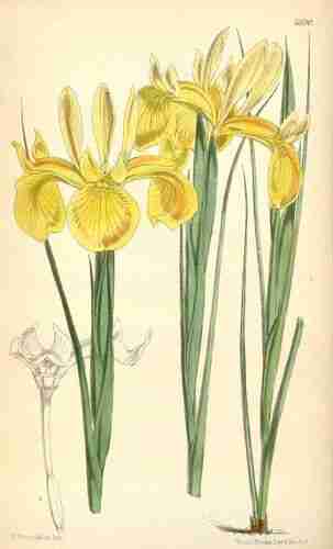 Original : A bulb plant. It is like Spanish iris (Iris xiphium). The lower leaves are only 1-3 mm wide. The flowers are entirely yellow. The spathes have a membranous tip{{{0(+x).