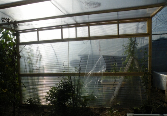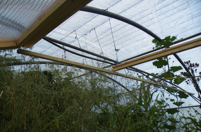 Réalisation d'une serre (ou véranda) polycarbonate avec armature en bois, sous couvert (à l'intérieur d'une serre tunnel)