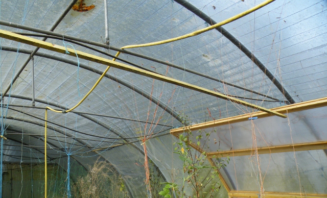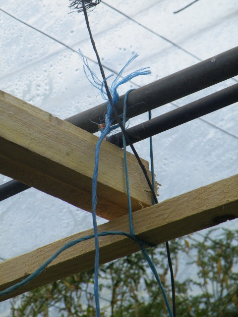 (déjà monté et vissé) sur le sol contre les barres de la serre tunnel, et l'attacher à ces dernières avec de la ficelle épaisse comme sur