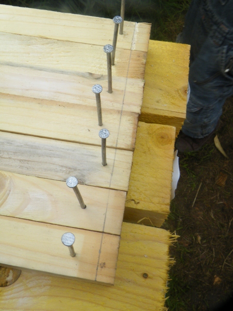 N.B. : Pré-pointer plusieurs lattes en suivant un modèle permet de gagner un peu de temps. J'ai choisi de pointer tous les 25cm mais, n'étant pas expert en la matière, je n'ai peut-être pas choisi la meilleur solution.